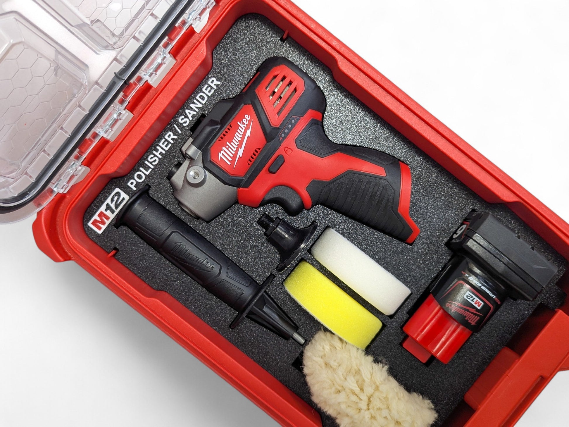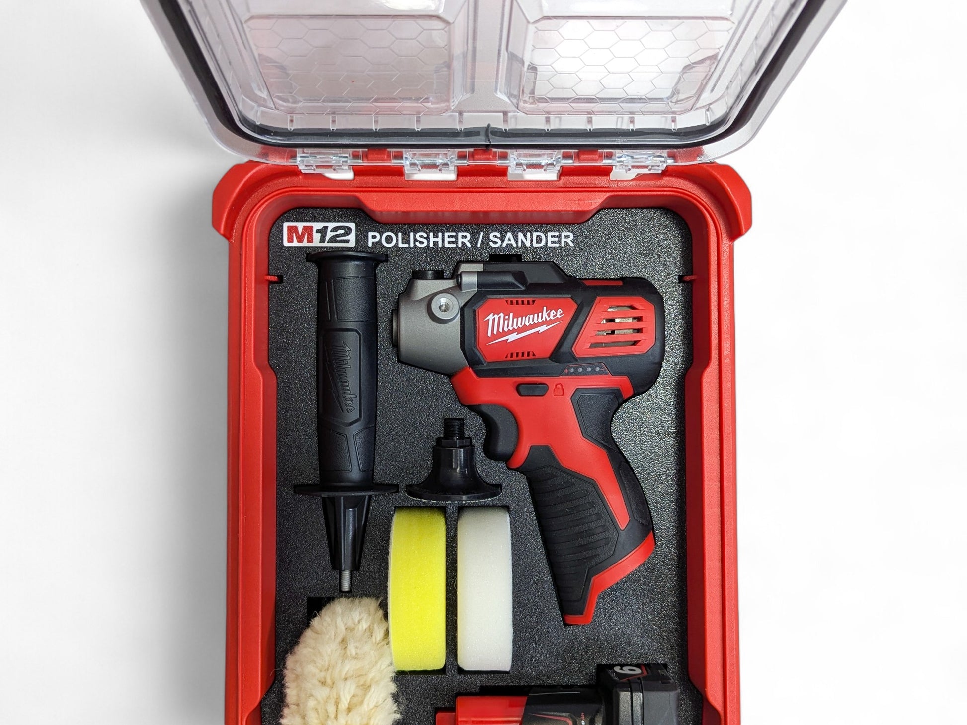 The Milwaukee Packout Compact Organizer 48-22-8435, M12 Polisher, M12 Batteries and accessories shown are not a part of the sale and are shown for demonstration purposes to showcase the product. We have no affiliation with the Milwaukee brand.
