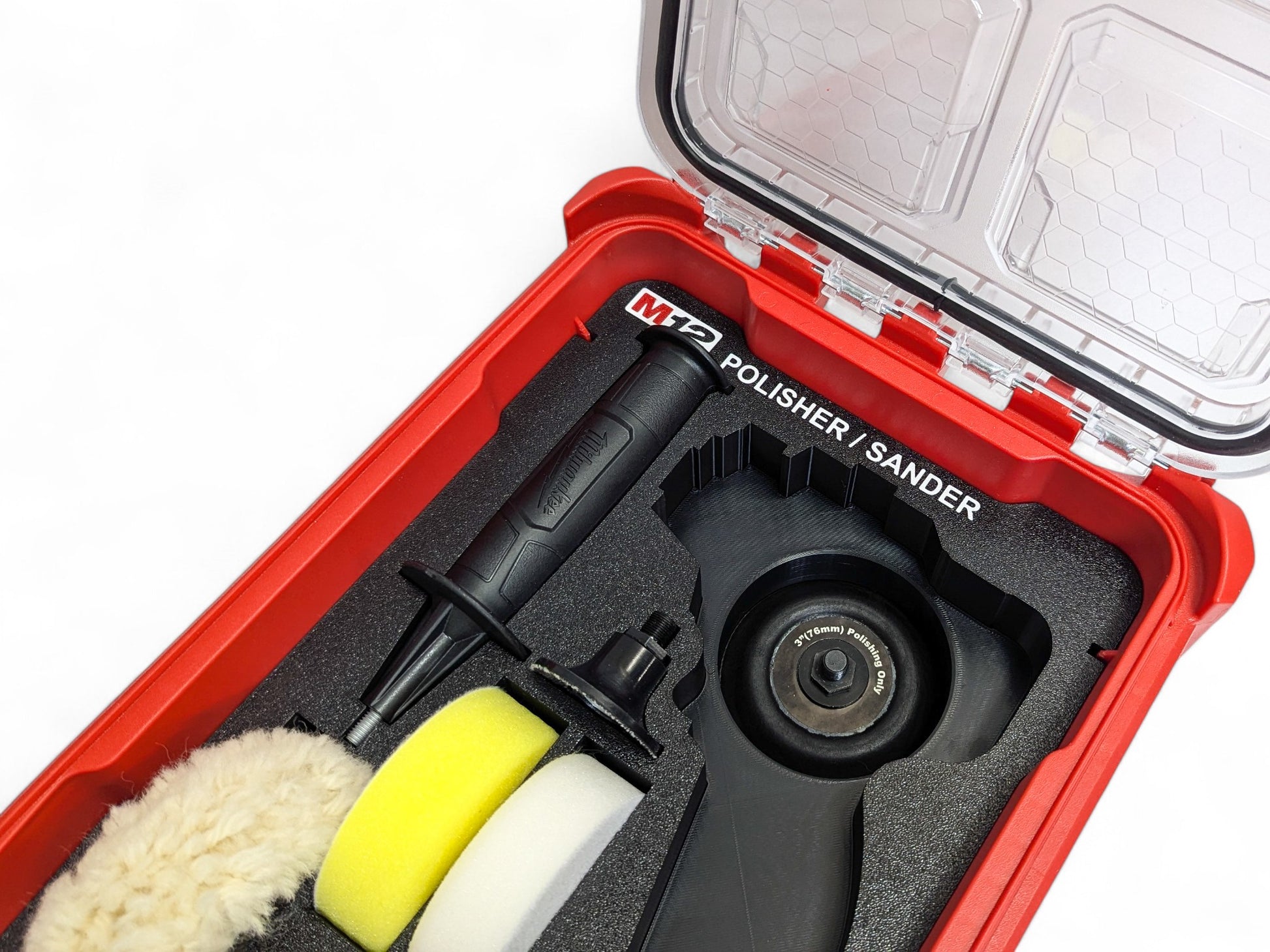 Personalize your Milwaukee Packout with the M12 Polisher/Sander Insert to suit the Compact Organizer. Each individual accessory that is supplied with the tool is meticulously modeled into the 3d print ensuring a snug fit keeping your tools and accessories secure and also includes our signature dual M12 Battery design allowing flexibility in battery storage for your insert. removal of Polisher skin can be done via the battery connection on the skin .Printed in PETG for a more durable product.