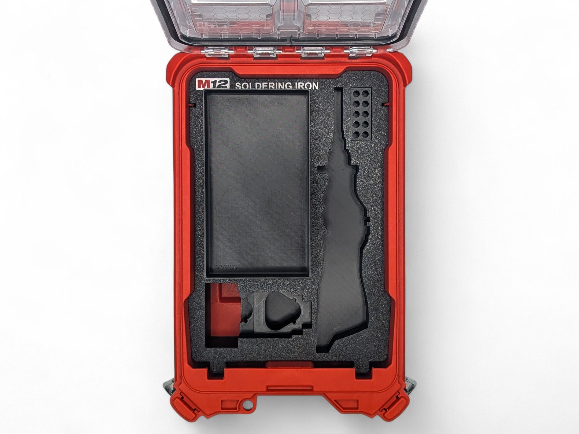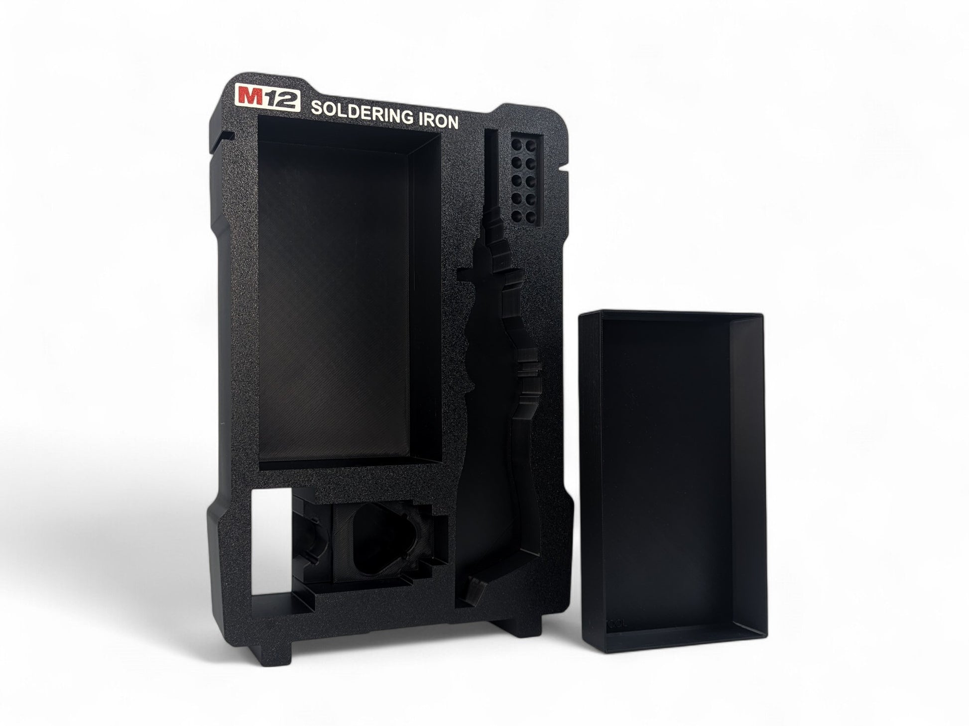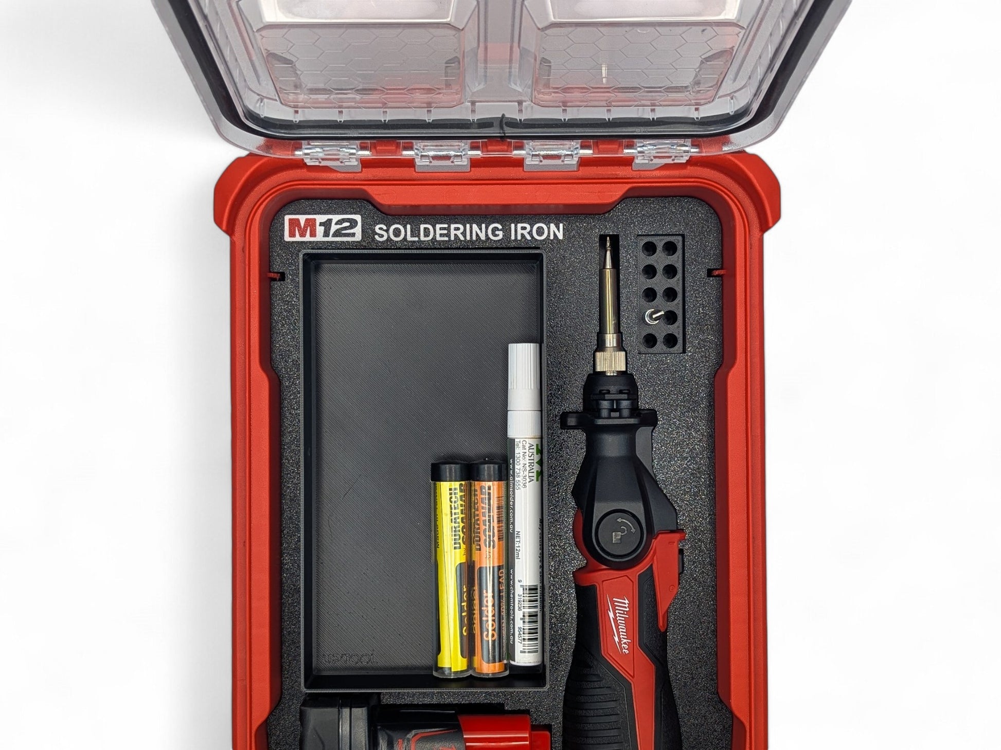 Personalize your Milwaukee Packout with the M12 Soldering Iron Insert to suit the Compact Organizer. Each individual accessory that is supplied with the tool is meticulously modeled into the 3d print ensuring a snug fit keeping your tools and accessories secure. Also includes our Dual M12 Battery design allowing flexibility in battery storage in your insert. Removal of Soldering Iron Skin can be done via the battery connection or LED shroud. Printed in PETG for a more durable product.