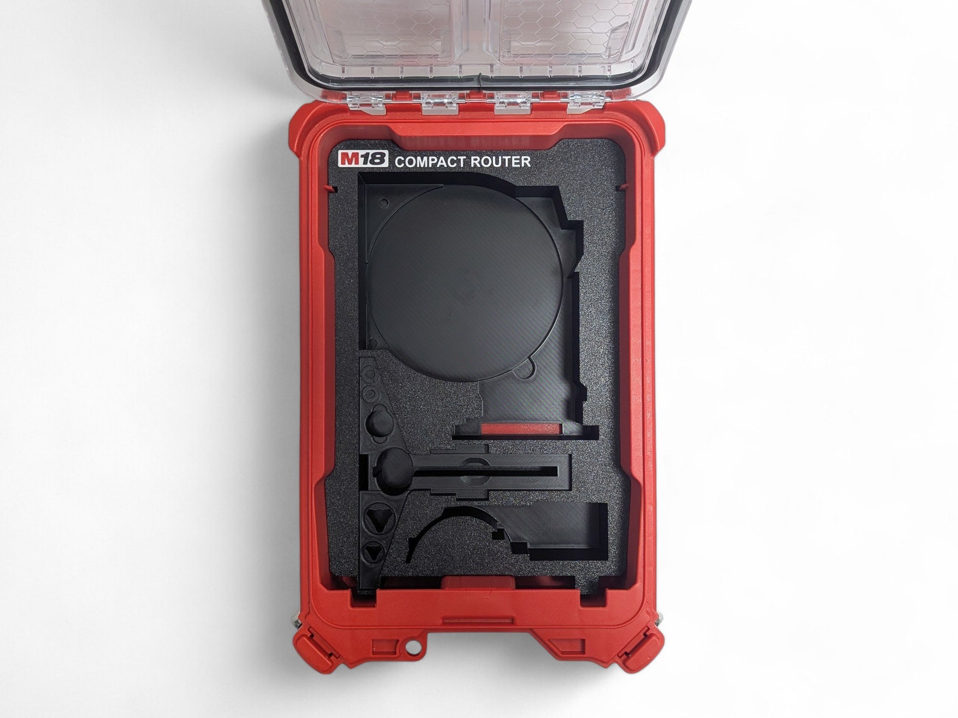Personalize your Milwaukee Packout with the M18 Compact Router Insert to suit the Packout Compact Organizer. Each individual accessory that is supplied with the tool is meticulously modeled into the 3d print ensuring a snug fit keeping your tools and accessories secure. Also upplied with a removable ¼” shank router bit tray. Printed in PETG for a more durable product