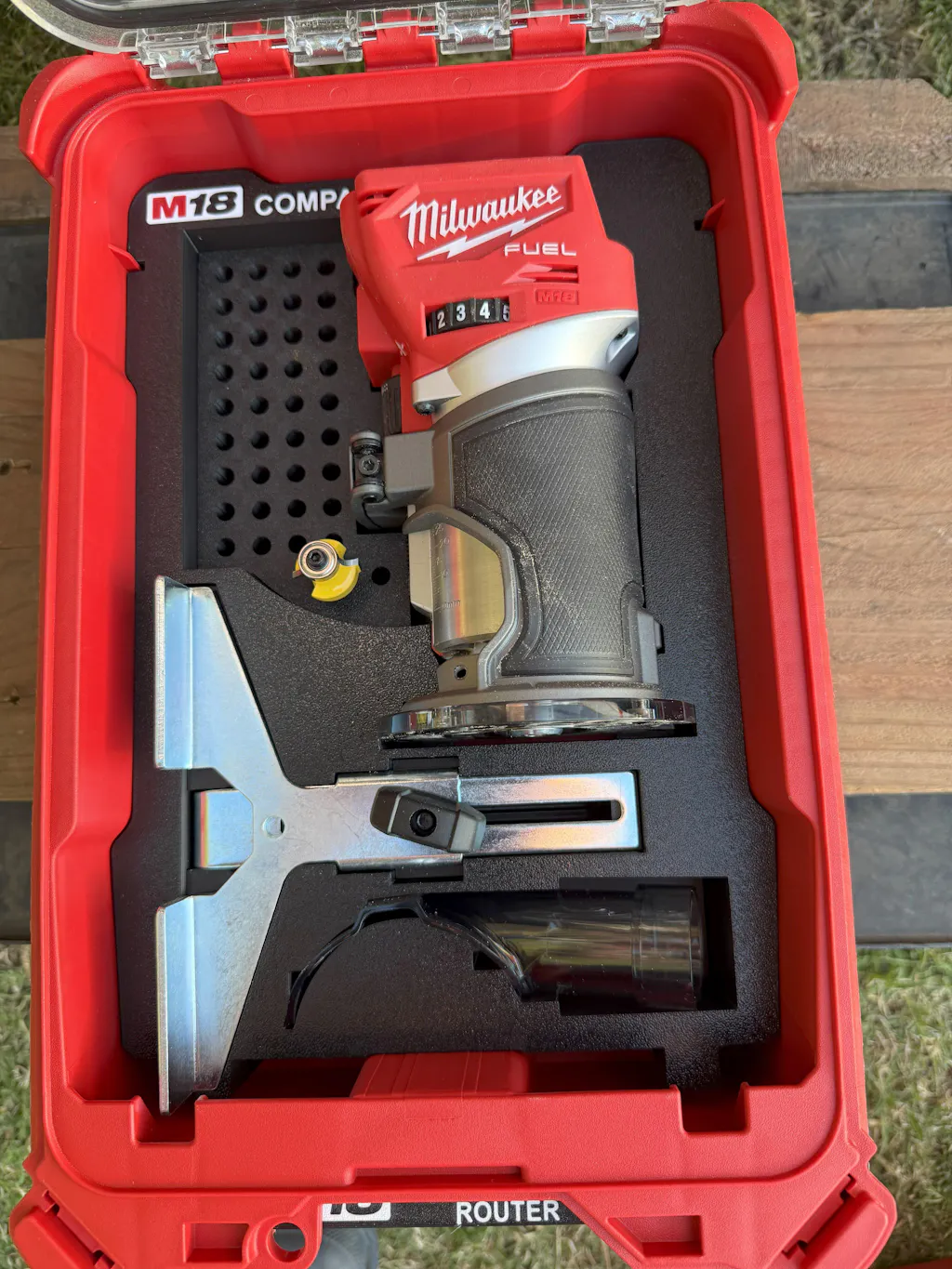 The Milwaukee Packout Compact Organizer 48-22-8435 and M18 Compact Router and accessories shown are not a part of the sale and are shown for demonstration purposes to showcase the product. We have no affiliation with the Milwaukee brand.