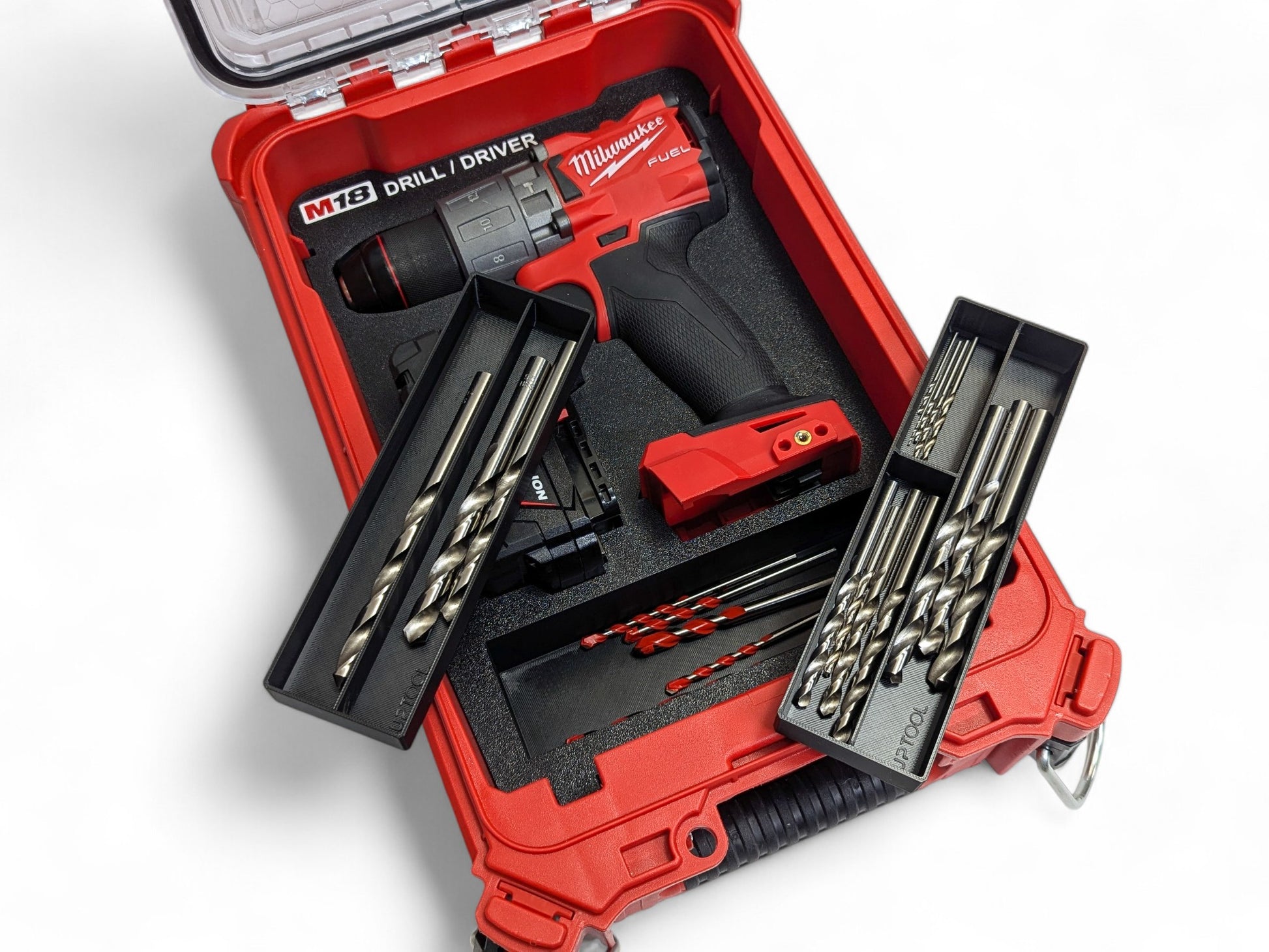 Personalize your Milwaukee Packout with the M18 Drill/driver(Gen3) Insert to suit the Compact Organizer. Each individual accessory that is supplied with the tool is meticulously modeled into the 3d print ensuring a snug fit keeping your tools and accessories secure and also supplied with two removable trays Ideal for storing a wide variety Drill bits , removal of Drill skin can be done lifting via the battery connection on the skin, fitment of belt hooks or bit holders on the Drill/Driver skin is not possible in the Compact organizer. Doing so flexes the clear Packout lid. Printed in PETG for a more durable product.